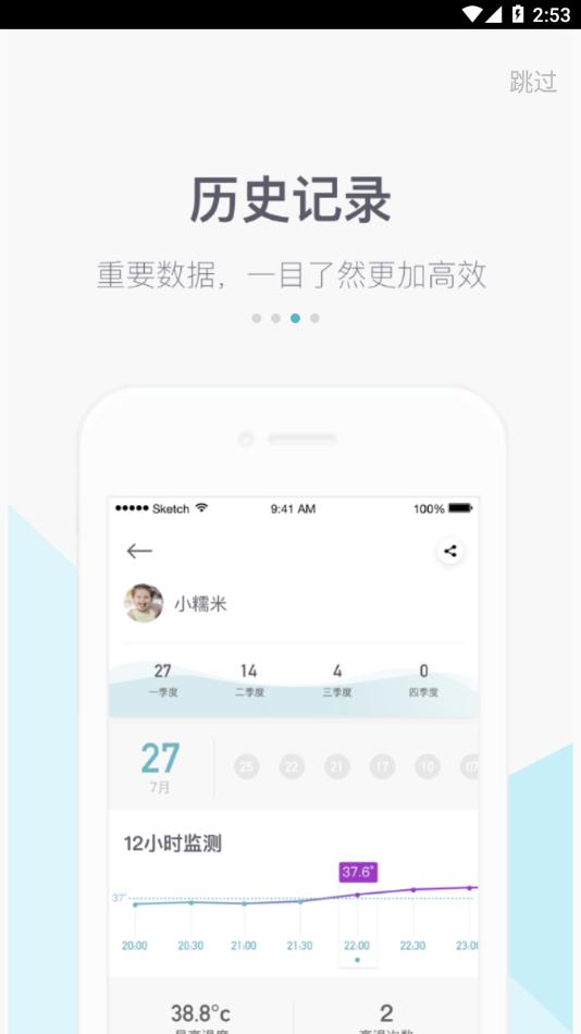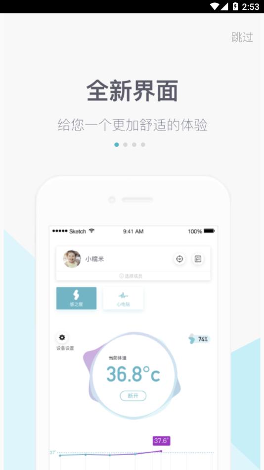 感之度应用程序需要配合感之度贴片使用,贴片测量的体温会实时传入手机。