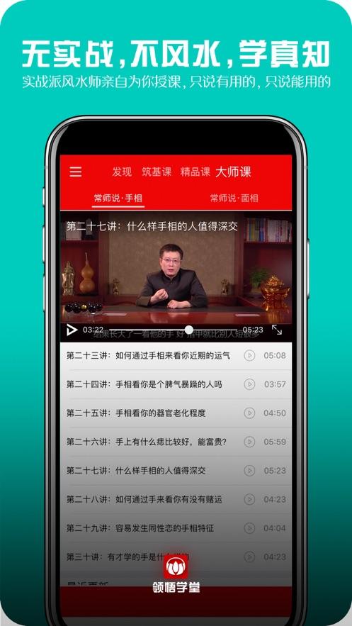 “领悟学堂”是一款融合创新玄学的传统文化学习应用,用视频、音频、图文形式呈现系统课程(含八字命理、梅花易数、玄空风水、奇门遁甲、手相面相等),让用户从玄学角度发现国学传统文化魅力,让你轻松学传统文化知识,“领悟”真知。