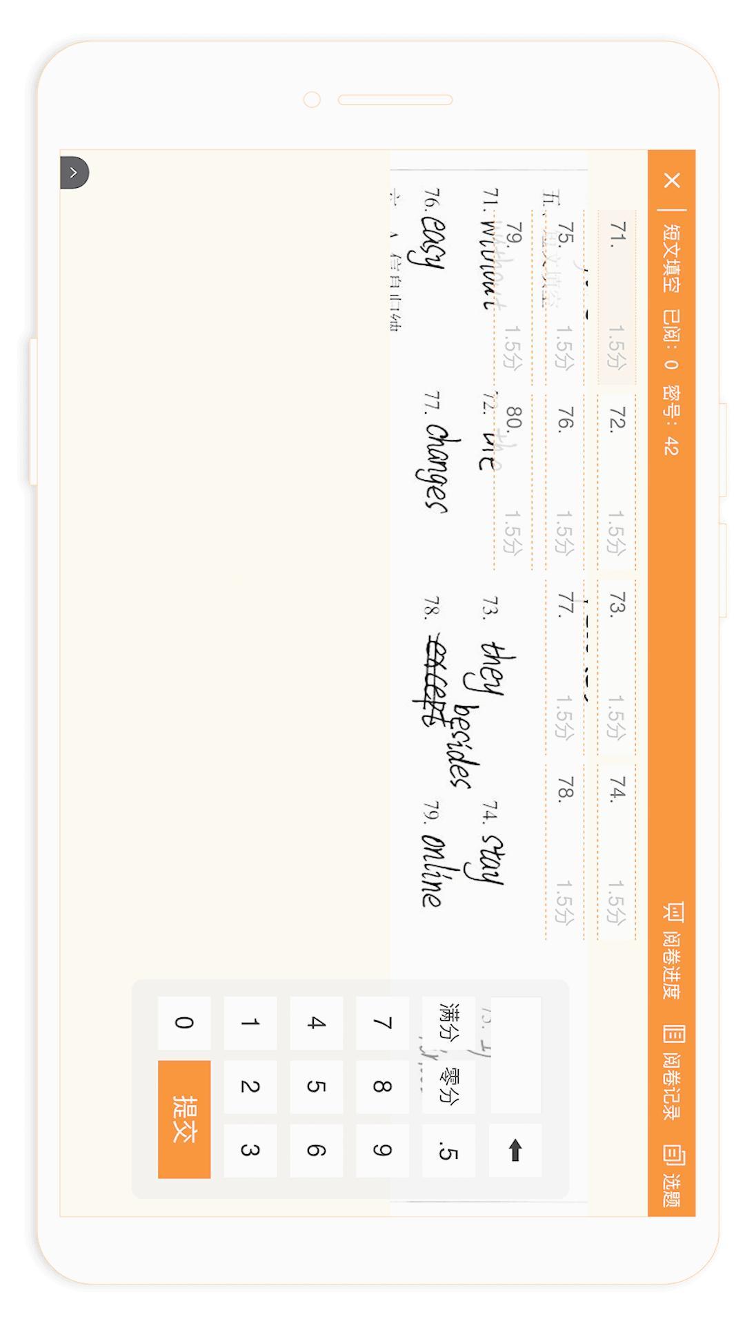 ESA阅卷是一款面向阅卷老师的移动端云端阅卷应用,让老师从繁琐的线下传统阅卷解脱出来,轻松批阅试卷。阅卷数据信息化,有助于老师把控阅卷质量。