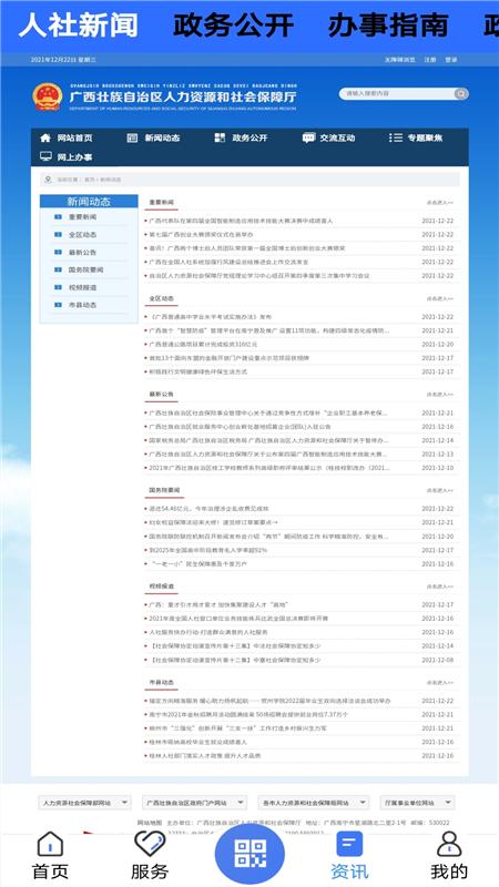 客户端为广西已上线应用金保数据信息系统的地区,并在当地人力资源与社会保障局参保的参保人员提供养老、医疗、失业、工伤、生育等信息查询;用户通过“客户端”随时随地查询个人基本信息,社保历年对账单,五险缴费情况,医疗消费明细、养老金发放明细、社保卡解(挂)失等近数十项数据,灵活人员还可以通过该系统来对养老、医疗进行手机缴费,以及对退休人员进行手机人脸识别待遇资格认证。