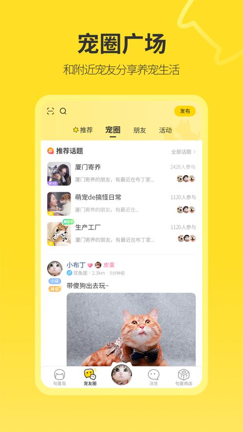 句苗岛是一个品质养宠生活圈,在这里可以认识附近有共同爱好的宠友,