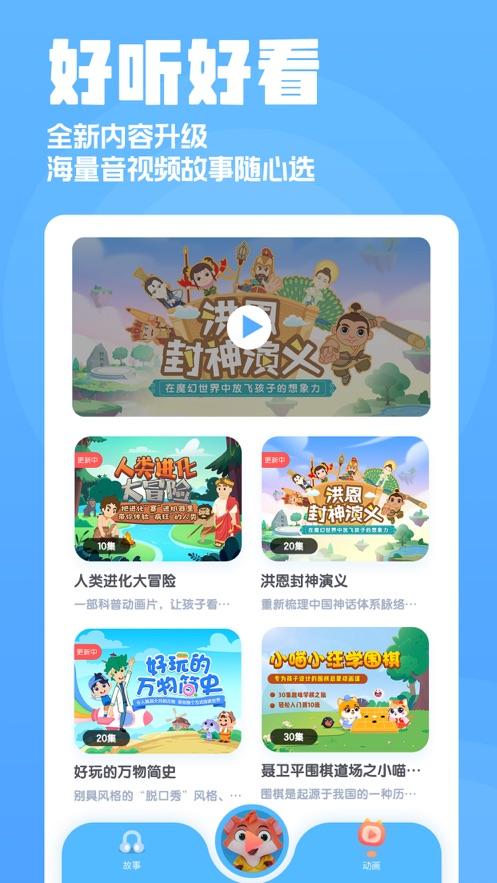 将“知识”用孩子们喜闻乐见的形式呈现出来,更易吸收。内容涵盖自然科普、历史人文、成长教育、童话故事、经典儿歌、国学历史、经典名著、世界奇观、校园故事等多个品类,孩子们可以根据自己的需求选择“听故事”或“看动画”。
