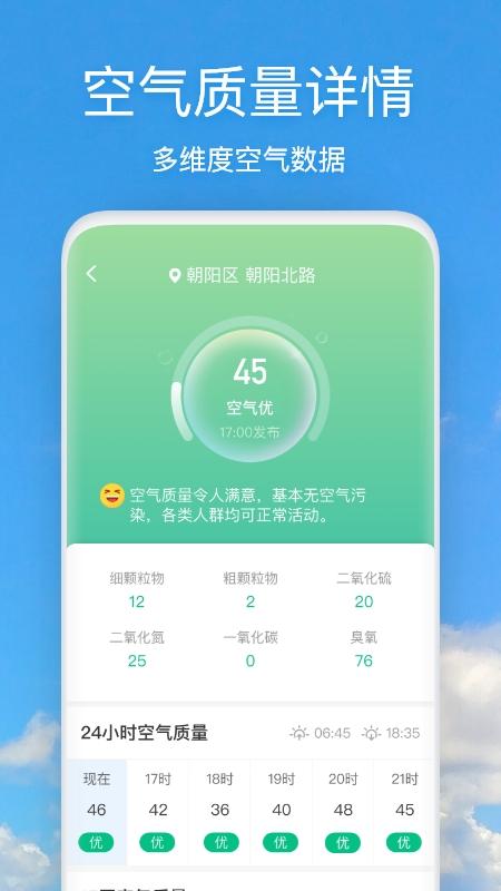 除此之外,还有24小时天气预报、未来15天天气预报、空气质量指数、温度趋势、pm2.5等全面天气信息。