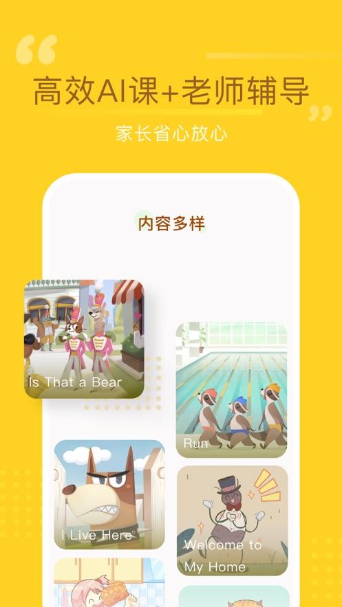 2. 课程内容严格按照剑桥少儿英语能力体系教纲编排,中外教育专家和编辑联合,全自研精美绘本,做到知识点、课程内容、绘本阅读统一,贯穿始终,帮助孩子学有所用;