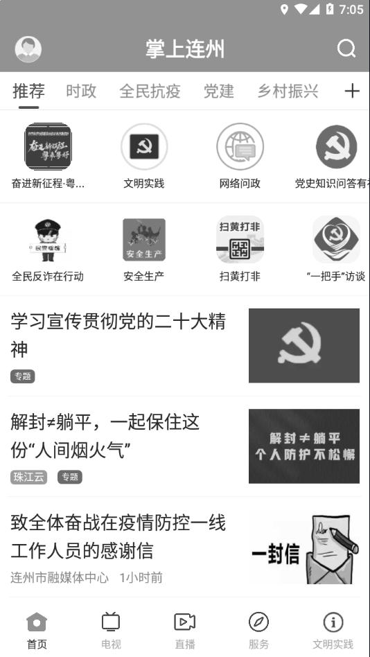 掌上连州app下载是专为连州制作的融媒体移动平台,平台拥有新闻资讯,电视,直播,服务,文明实践等等功能内容,可以帮助更好的引导及服务连州。