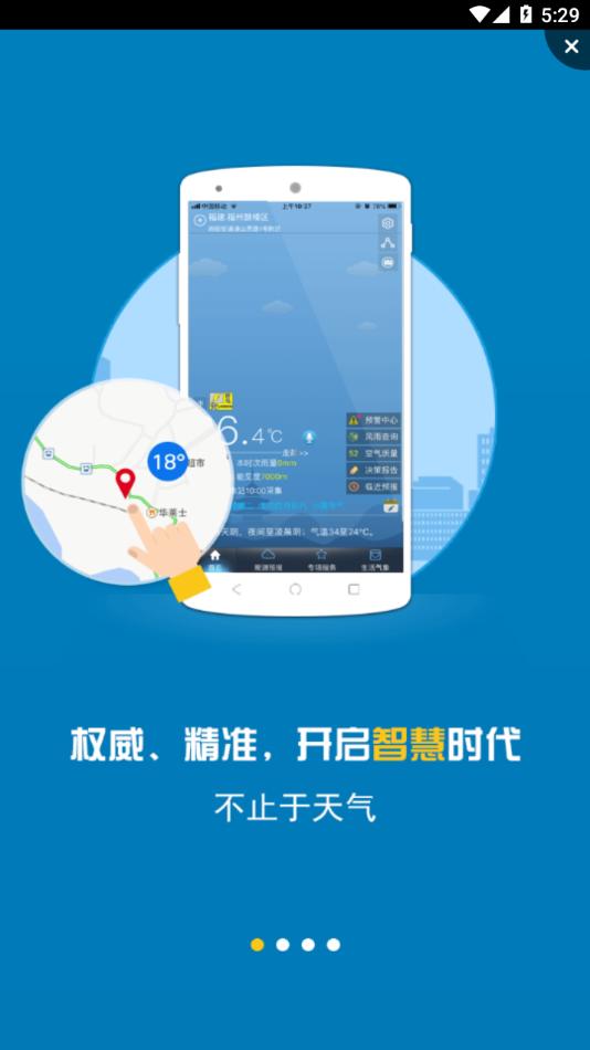 4、个性:基于手机终端优势,为用户提供丰富的管理工具,精准定制决策服务,个性设置通知推送、气象产品、生活指数等功能。