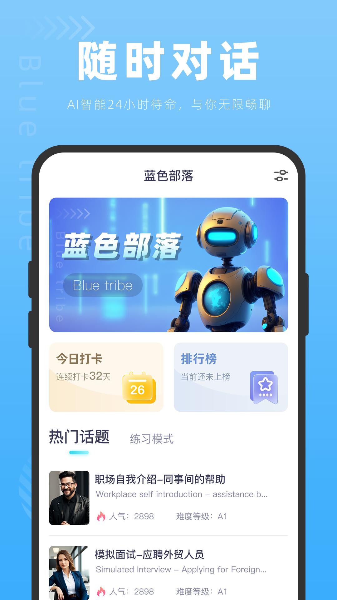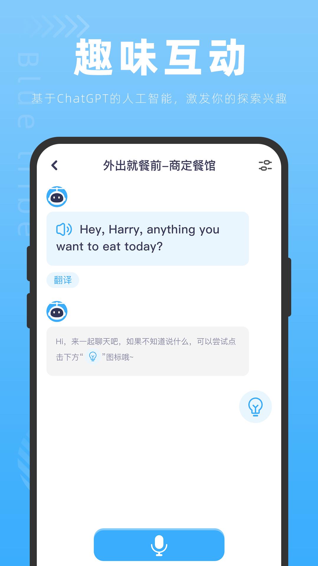 与AI对话,轻松锻炼英语口语,尽在蓝色部落!