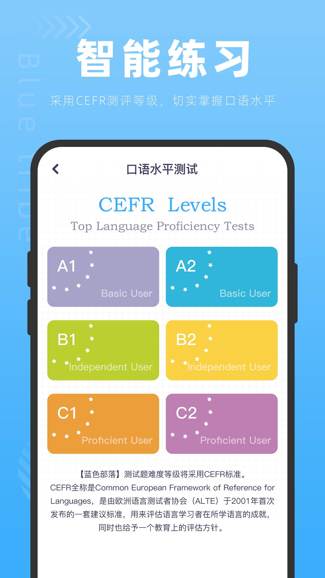 -智能练习,采用CEFR测评等级,切实掌握口语水平。