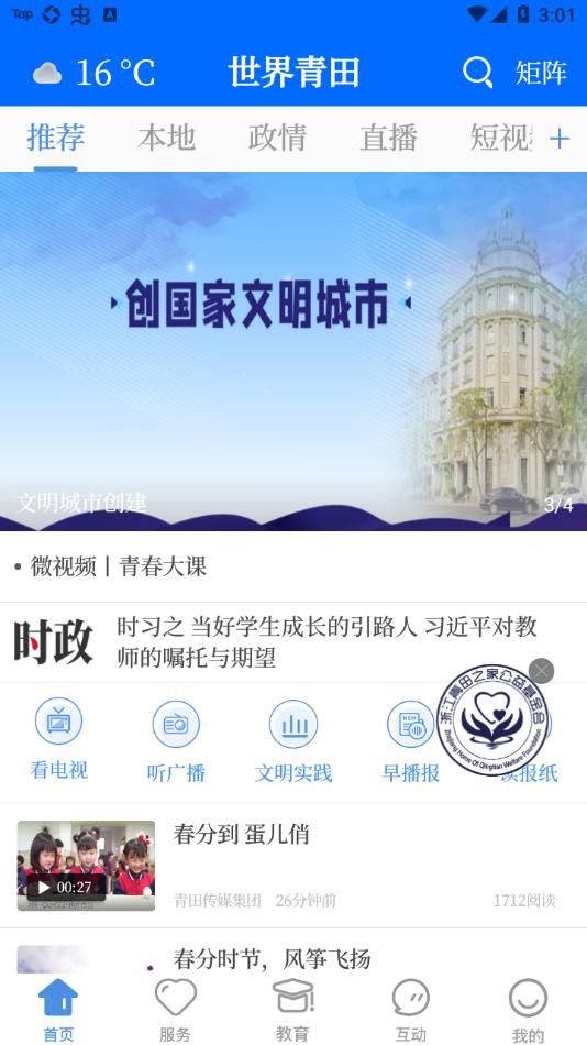 青田传媒集团综合应用,综合原有“青田新闻”和“青田在线”两个APP客户端的资源内容,