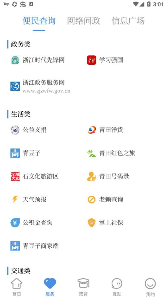 4、便民查询,用户可以在这里一键了解青田的天气,违章查询,政策查询等;