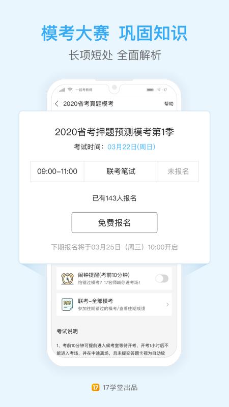 由17学堂出品,承袭一起考教师的优秀品质。精师直播、闯关刷题、仿真模考,学练测评一站式学习平台。