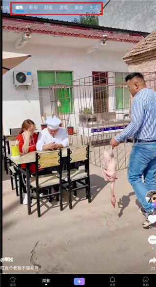 2、探索菜单里有各类短视频包括搞笑、影视、游戏、美食等