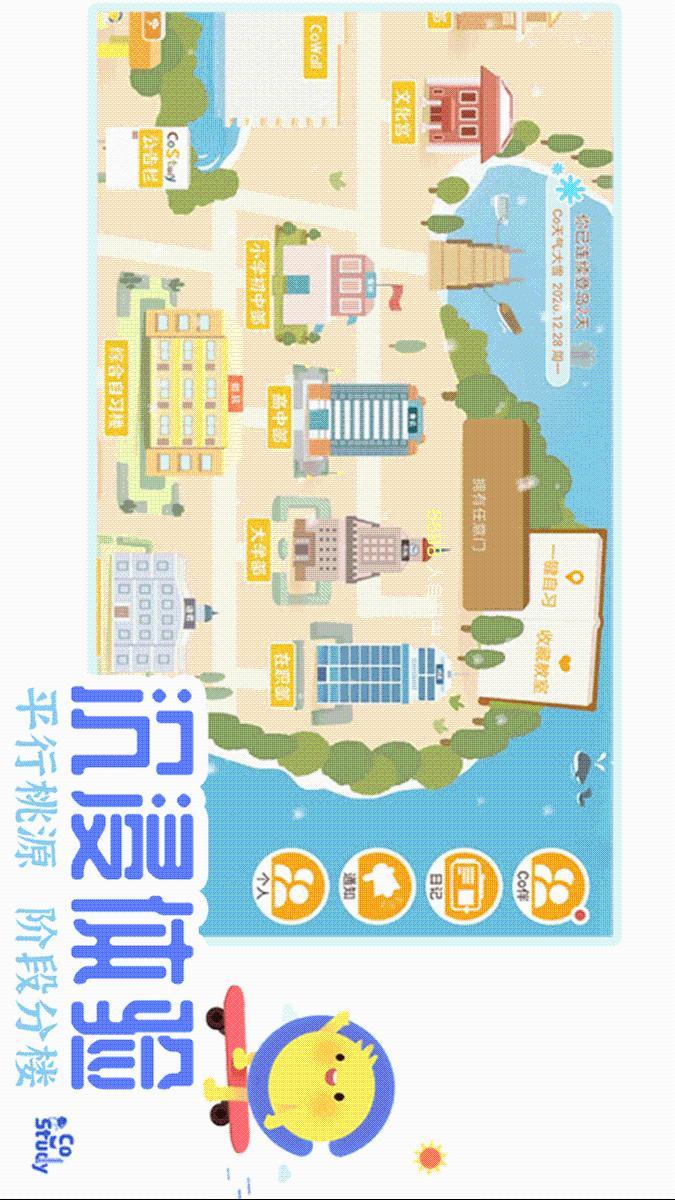CoStudy校园还原真实的校园场景,按不同阶段设立教学楼,快来找到专属你的教学楼吧。
