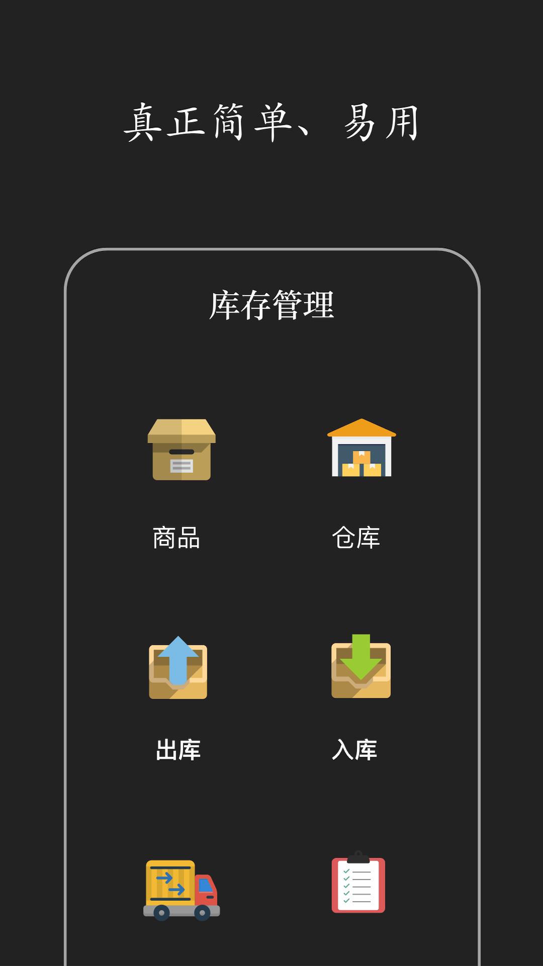 1、简单,好用易上手,全新的手机仓管软件,帮助你更好的管理。