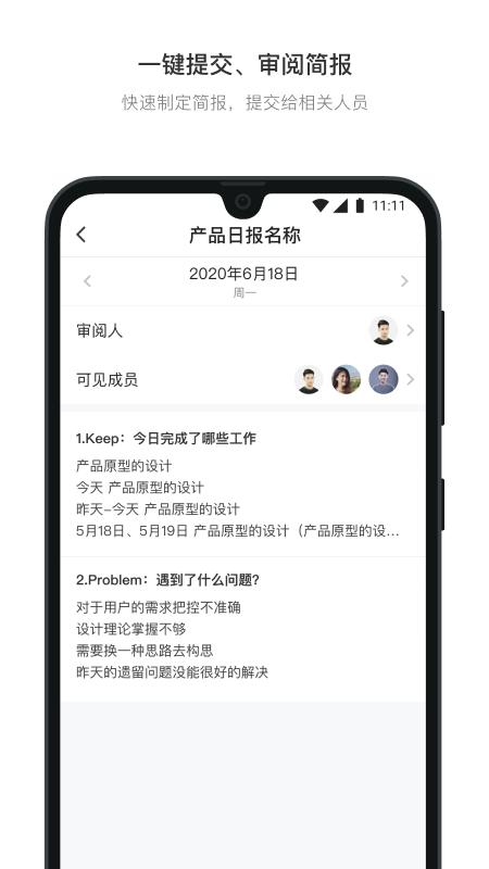 ● 笔记:工作笔记可以随时编辑,轻松共享,日报、周报、月报一键生成。“K.P.T.P一键生成模板”,只要在日程中勾选完成的工作内容便可自动生成一篇工作日志,让回顾工作变得简单方便,相关人员随时查阅编辑,跟踪反馈。