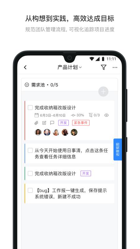 日事清是受团队管理者和决策人喜爱的团队管理软件。通过选择日事清,培养高效运转的工作模式。让团队、部门沟通顺畅、权责分明,高效配合,让团队发挥出1+1大于2的能力。团队的每个成员都各展所长,互补互助以达到团队最大产出。