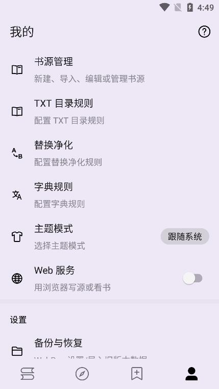 6. 云同步服务:支持云端数据同步,方便用户在不同设备间转移阅读进度和收藏的书源。