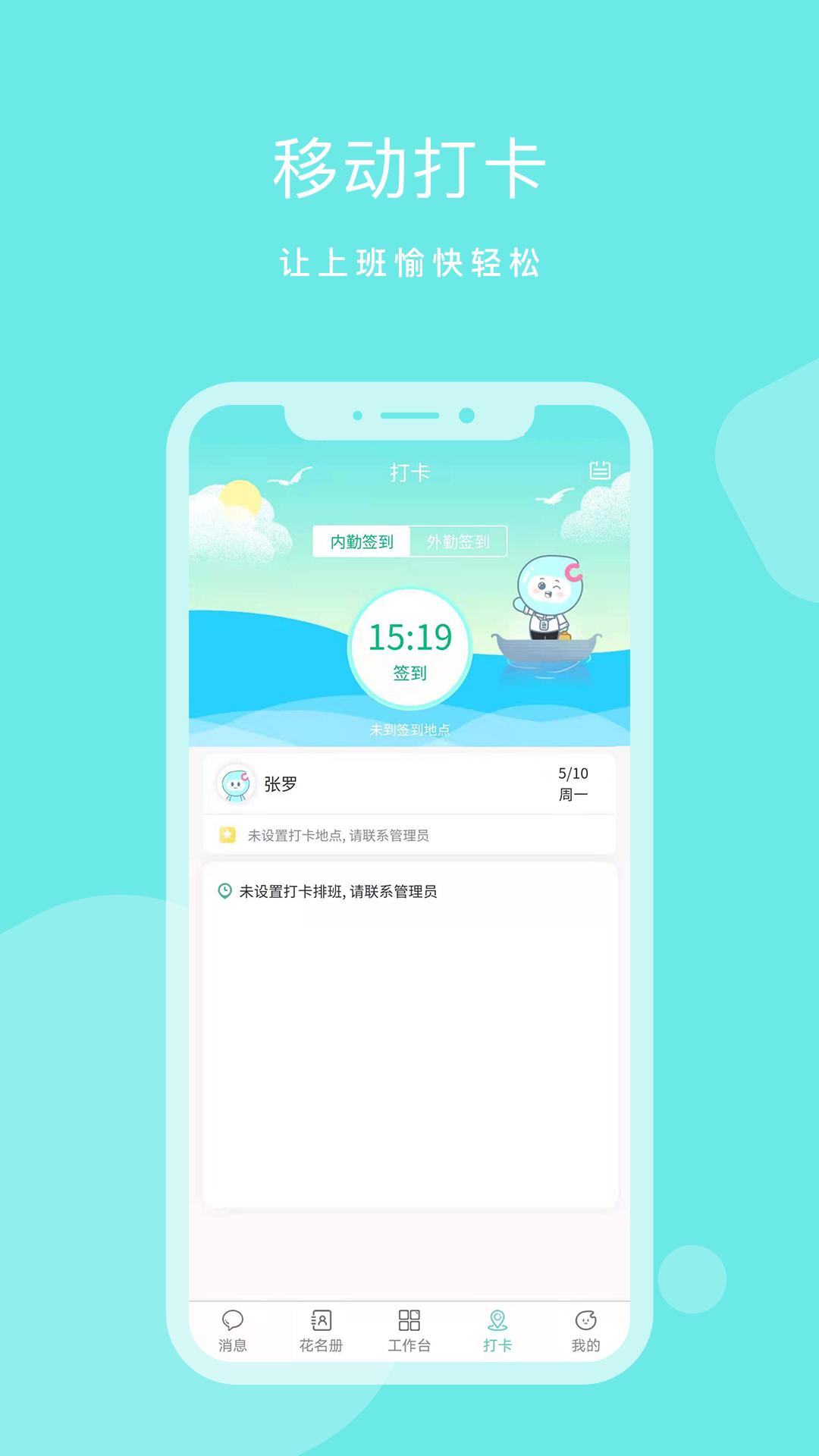 提供通讯录、公司公告发布、工资单查看、移动打卡、休假申请/审批、加班申请/审批等流程驱动的事务管理。
