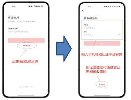 1.激活操作(移动端首次使用需激活设备,后续不用)