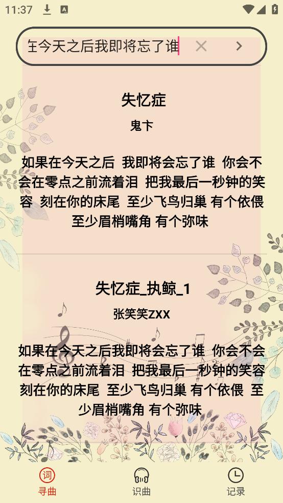 2.歌词搜曲,搜索记忆中歌曲的歌词或者歌名,就可找到自己想要的歌曲。