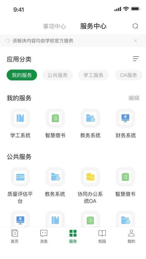 福建林职app是专为福建林业职业技术学院制作智慧校园服务平台,平台拥有首页,消息,服务,校园,我的等等功能板块,可以更好的服务广大师生。