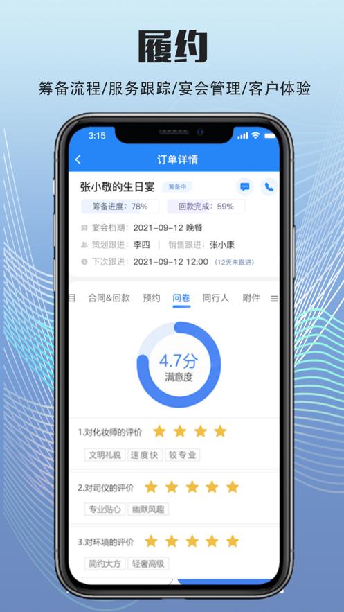 客户体验的微小提升足以带来显著的收益增长。满足您的流程筹备管理、服务节点跟踪、客户体验管理、宴会产品管理,来提升客户服务体验的触电,为客户创造更好的体验感。
