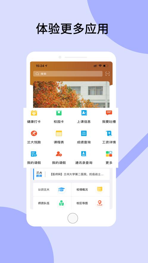 兰州大学APP下载是专为兰州大学师生制作的掌上校园应用,软件拥有虚拟校园卡,充值缴费,余额查询,网络报修,新闻通知等等丰富功能,可以帮助更好的校园学习生活。
