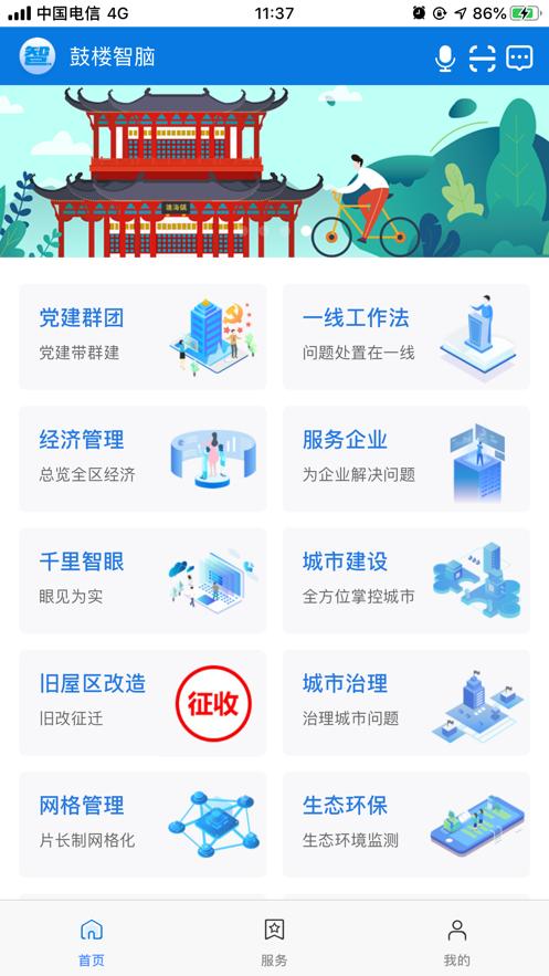 鼓楼智脑app下载是一款城市管理服务平台,平台拥有党建群团,一线工作法,经济管理,千里智眼,网格管理,生态环保等等功能服务,需要的朋友欢迎前来下载使用。