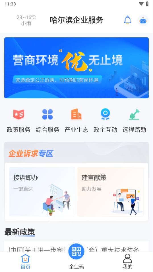 哈尔滨企业服务APP聚合惠企政策服务、企业综合服务、产业生态服务、政企互动服务等,