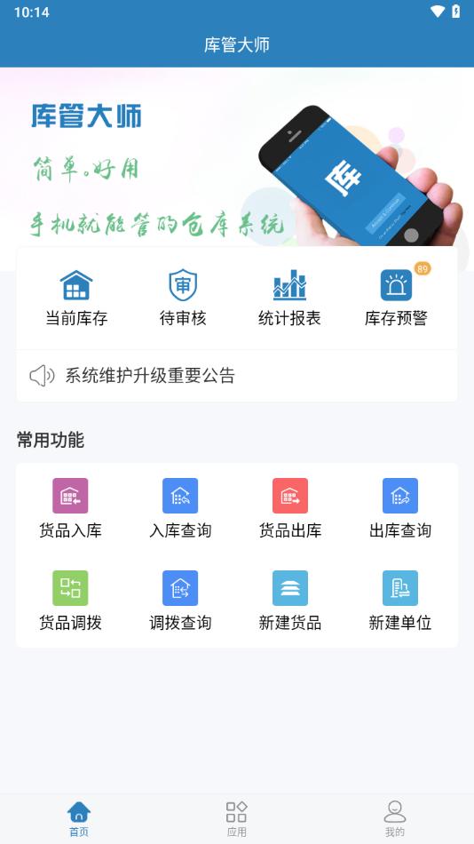 库管大师app是一款适用于各行业货品仓库库存管理软件,软件拥有仓库管理,基础数据,系统维护等等功能服务,安全稳定,需要的朋友欢迎前来下载使用。