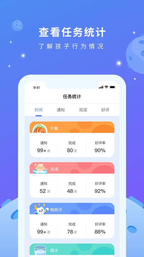 预设早起早睡、学习娱乐等习惯任务,远程发送任务,查看孩子的任务完成情况,培养孩子的良好习惯。