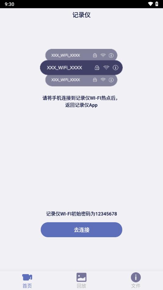将手机连接到记录仪wifi热点后,返回记录精灵使用即可,记录仪wifi初始密码为12345678