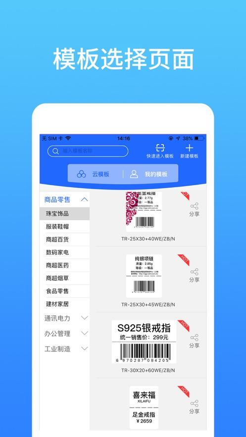 操作简单,可共享便签格式,实现Excel数据绑定,支持蓝牙/WIFI连接,支持多样字体,支持图片打印,自创工业标识...