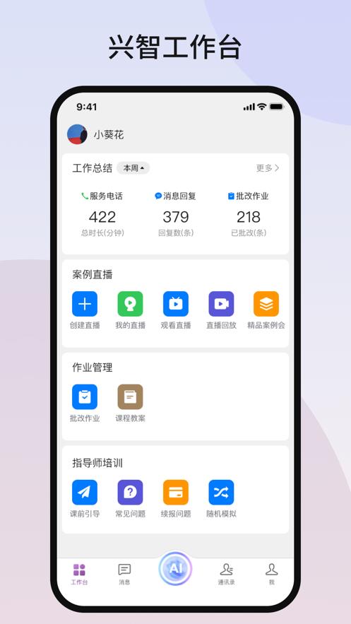 兴智工作台app下载是江西兴智教育科技有限公司官方专为家庭教育指导师量制作,软件拥有班组管理,学员沟通等等功能,需要的朋友欢迎前来下载使用。