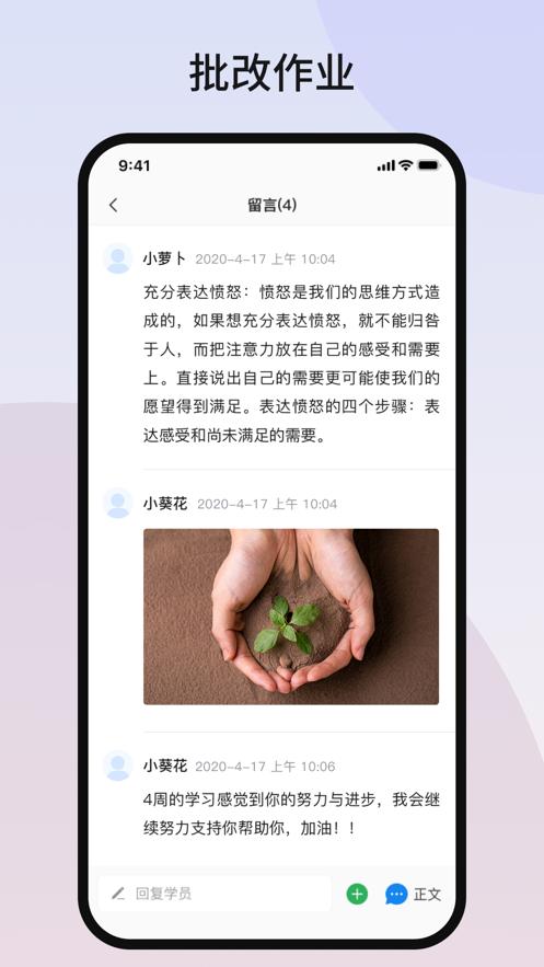 教练可以查看学员打卡情况,并对学员感想进行回复。