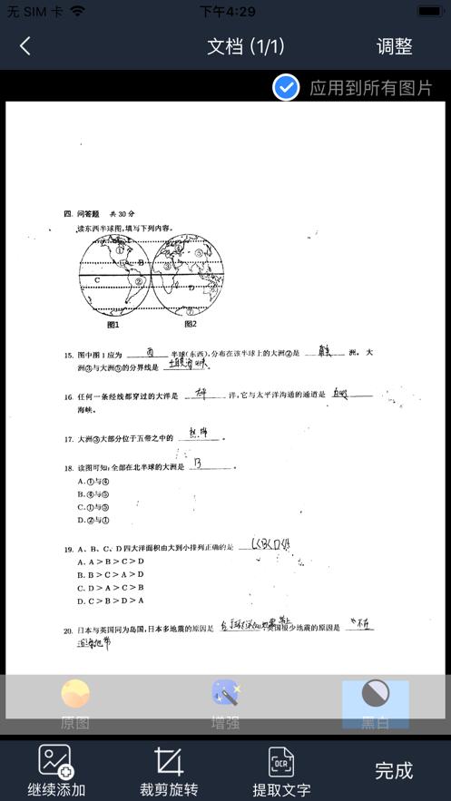 【拍文档】智能识别文件边缘歪着拍斜着拍都能矫正,黑白滤镜增强更清晰,文字识别精准一键复制;