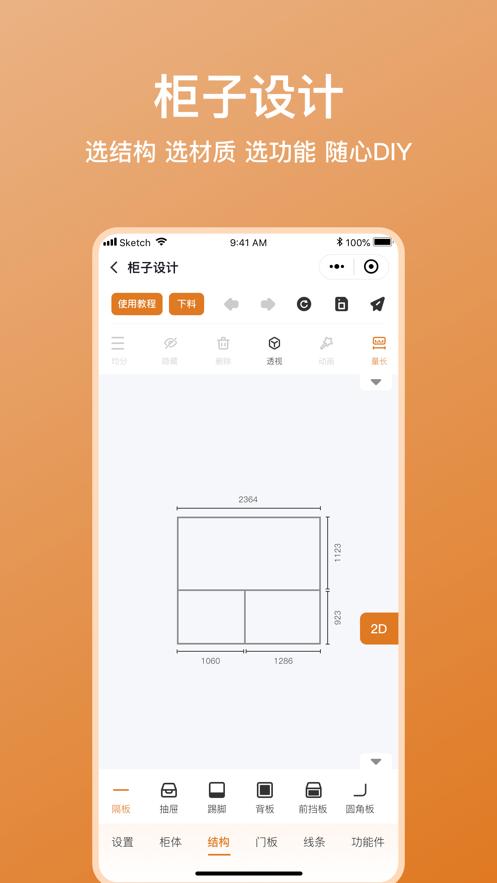 它提供了丰富的功能,包括酒柜、吊顶计算,还有角度计算、材料计算、还有柜子设计、板材算料、板材切割等实用功能。让您在木工项目中更加省时省力,更加专业高效。