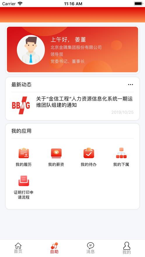 金隅ehr官方下载是金隅集团官方倾情推出,软件拥有首页,自助,消息,我的等等功能板块,是员工的掌上好帮手,需要的朋友欢迎前来下载使用。