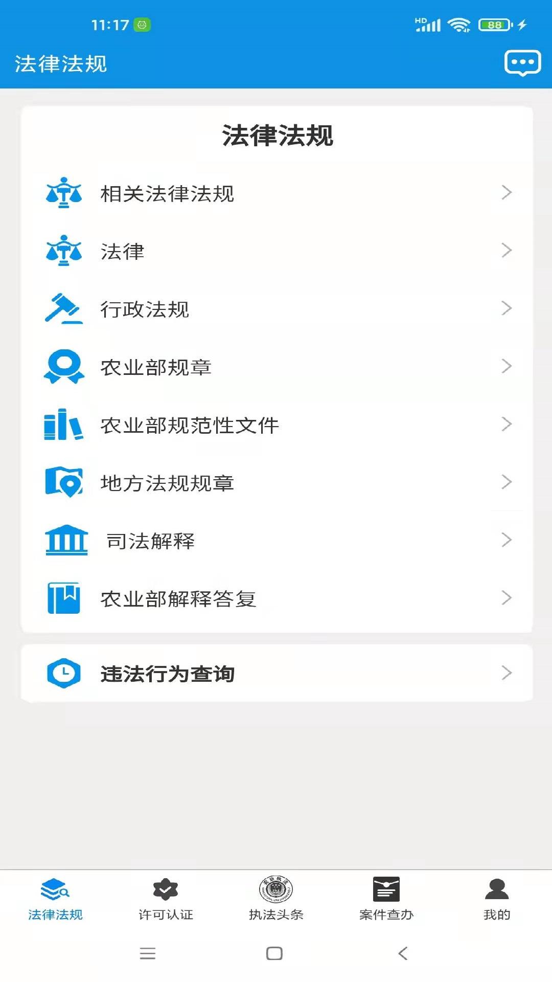 全国农业执法通APP是专为农业综合执法人员制作,软件拥有法律法规,许可认证,执法头条,案件查办,我的等等功能板块,需要的朋友欢迎前来下载使用。