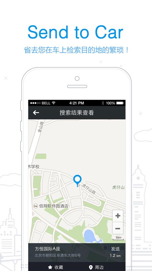 —上车前,提前锁定目的地,并分享给您的车机,当你上车后,启动车机导航,就可以直接进行路线引导。