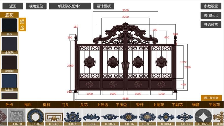 铝艺大师软件下载是一款铝艺大门设计设计工具,软件拥有多样门型款式,可以一键替换颜色,还可以拍照实地取景,显示尺寸等等,是铝艺大门设计的掌上好帮手。