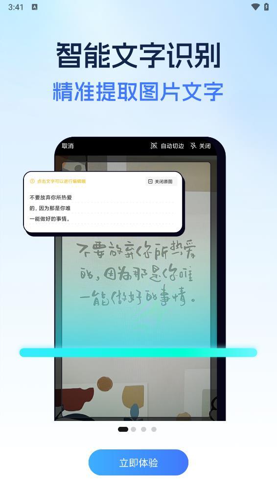 是一款集文件扫描、文字识别、拍图识字、图片转文字、PDF 内容编辑、PDF 分割合并、PDF 转 Word、拍照测量、动植物识别、作业批改、试卷擦除等功能于一体的智能扫描软件。