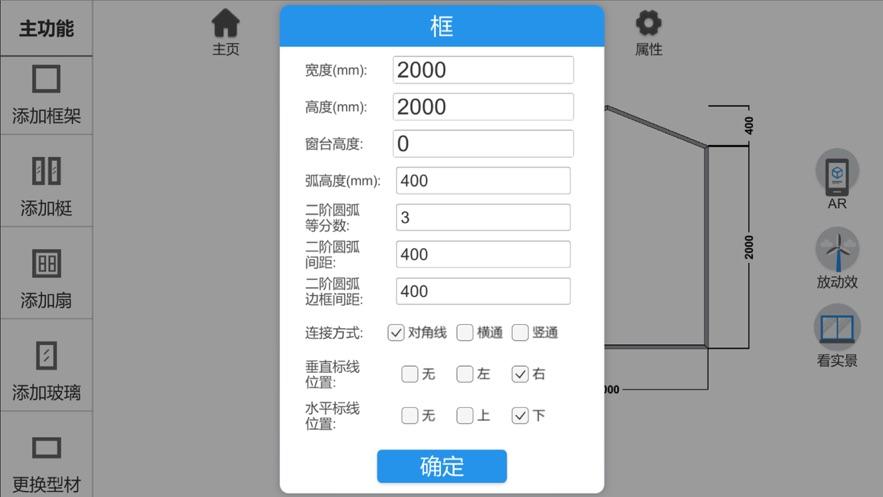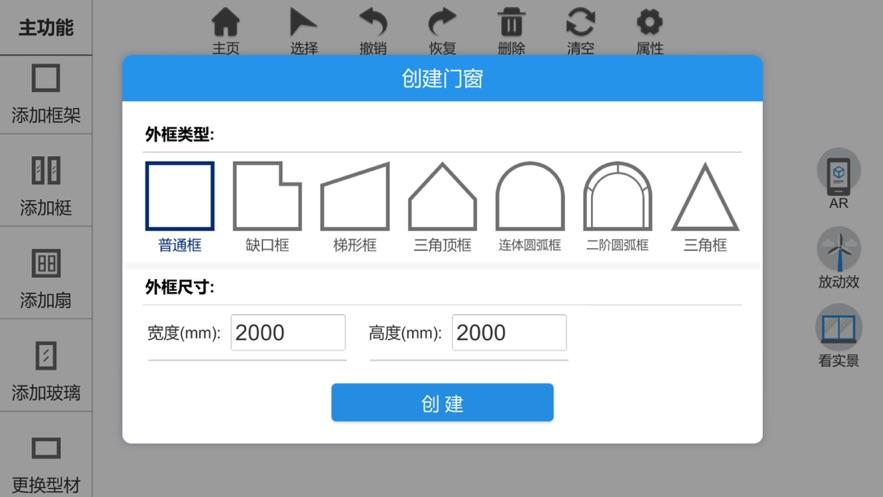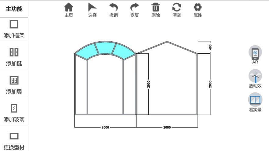 各种造型门窗自主设计,型材、玻璃颜色一键切换
