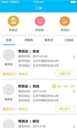 2.提供多种订单类型选择,帮买、帮送、帮取订单不断更新。