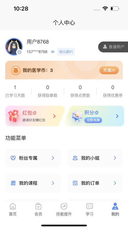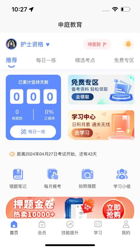 申庭医考app是一款医学考试备考学习助手,软件拥有首页,会员,技能提升,学习,我的等等功能板块,可以帮助用户更好的学习备考过考拿证。