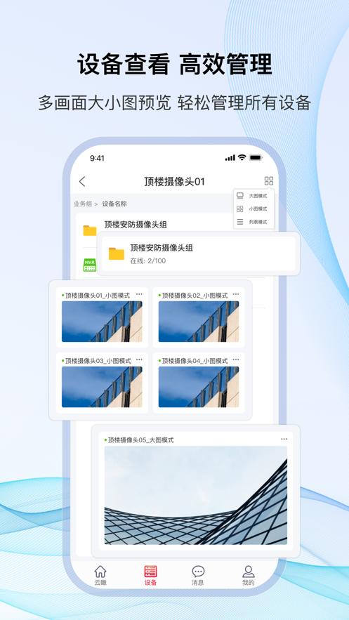 1、实时预览:在线设备的监控画面播放,实时、稳定的多屏观看体验