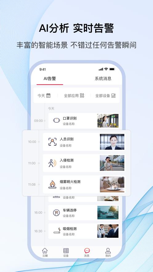 4、AI告警:AI应用及关联设备查看,告警信息实时接收,监控态势随时随地触达