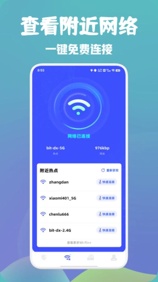 1、强大的WiFi网络助手,多种功能服务在线一键连接使用。