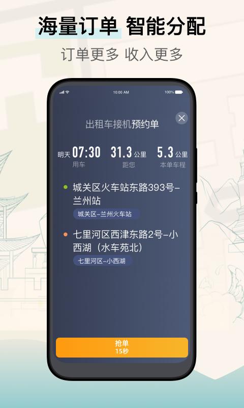 兰州出租司机端App是专为广大出租车司机制作,软件拥有海量的订单资源,司机可以在手机上一键抢单接单,并且软件操作简单方便,一键快速提现,可以助力司机更智慧高效接单送客赚钱,需要的朋友欢迎前来下载使用。