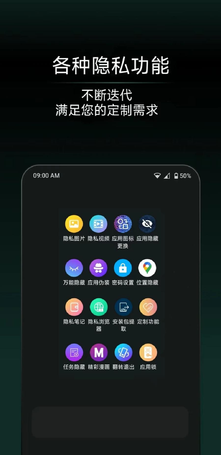 -除了应用隐藏功能外,应用隐藏王还提供了一套完善的隐私保护机制,帮助用户将重要数据妥善保存。